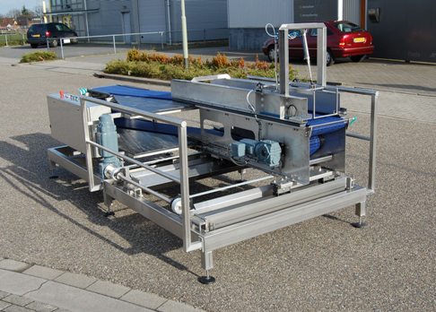 Horizontaal wisselsysteem De modulaire bandsystemen zijn ook zeer geschikt om kritische producten zoals broden te wisselen met behoud van zijn oriëntatie. Afgebeeld is een horizontale wisseltafel welke de mogelijkheid geeft om broden te verdelen naar drie verschillende lijnen. Bij de standaard lamellenwissels verdraait het brood of geraakt het tijdens wisselen soms zelfs naast de lamellen. Hierdoor ontstaan dan onnodige opstoppingen en storingen. Met onze horizontale wissel is dit verleden tijd. Hierdoor meer rust en rendement in de “tent”. ![]() ![]() ![]() |